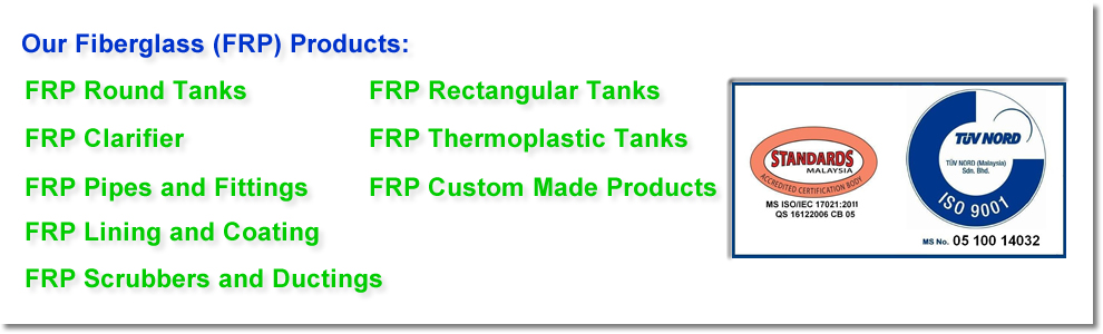 All of our FRP Cylindrical or Round tanks are made by Filament Winding Machine in which our FRP tank are superior in term of strength and appearance compared to the traditional Hand-lay fabrication method. The tank's connection (flanges) are complied with the standard such as JIS 10K, ANSI 150, to mention a few or specific standard to meet the requirement of customer. Accessories such as caged lader, level indicator, pipe supports and other special fittings are available too.
